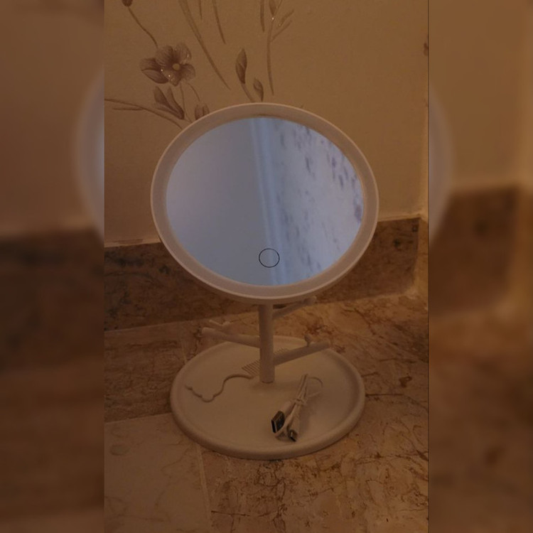 آینه رومیزی رینگ لایت با 3حالت چراغ کم نور و متوسط و پرنور است و همچنین اینکار آویز و جای لوازم آرایش و زیورآلات دارد. این آینه کابل شارژ همراه دارد و شارژ اولیه 8ساعت استوسیله ای بسیار زیبا برای نظم دهی میز و استفاده آسان از آینه است قطر آینه 18 سانت است و ارتفاع آینه 26سانت می باشد و قابلیت بزرگنمایی ندارد.