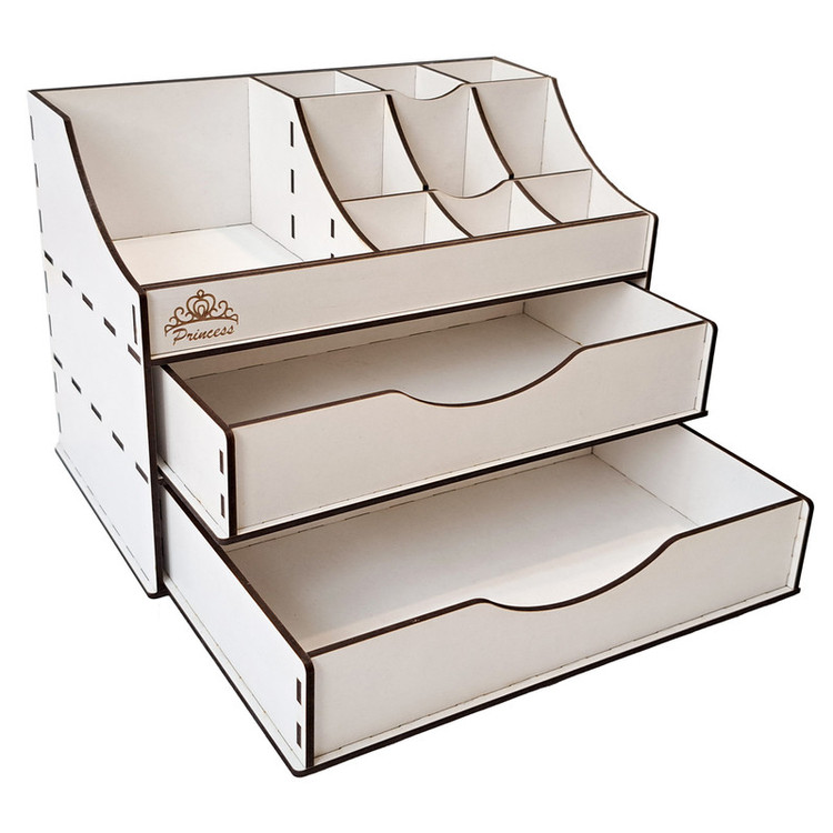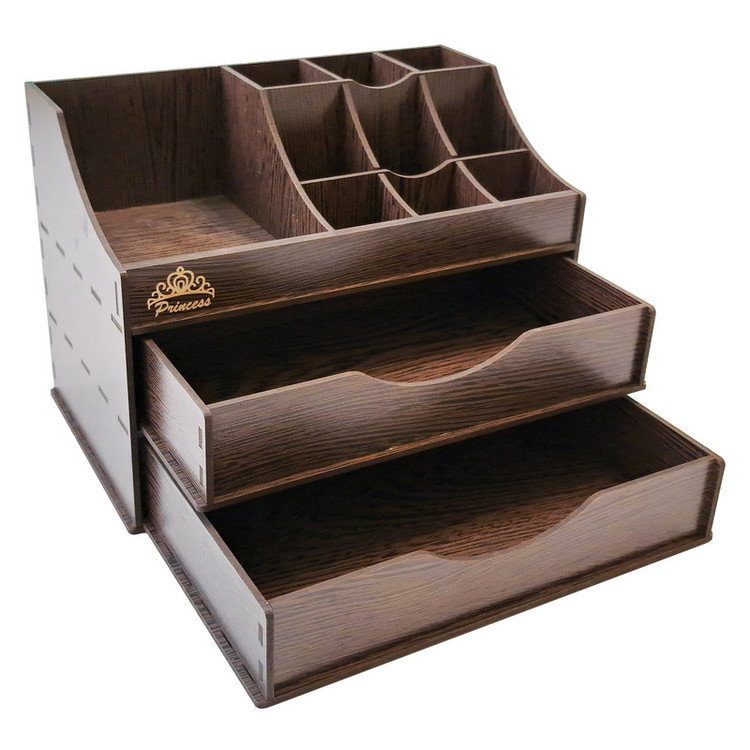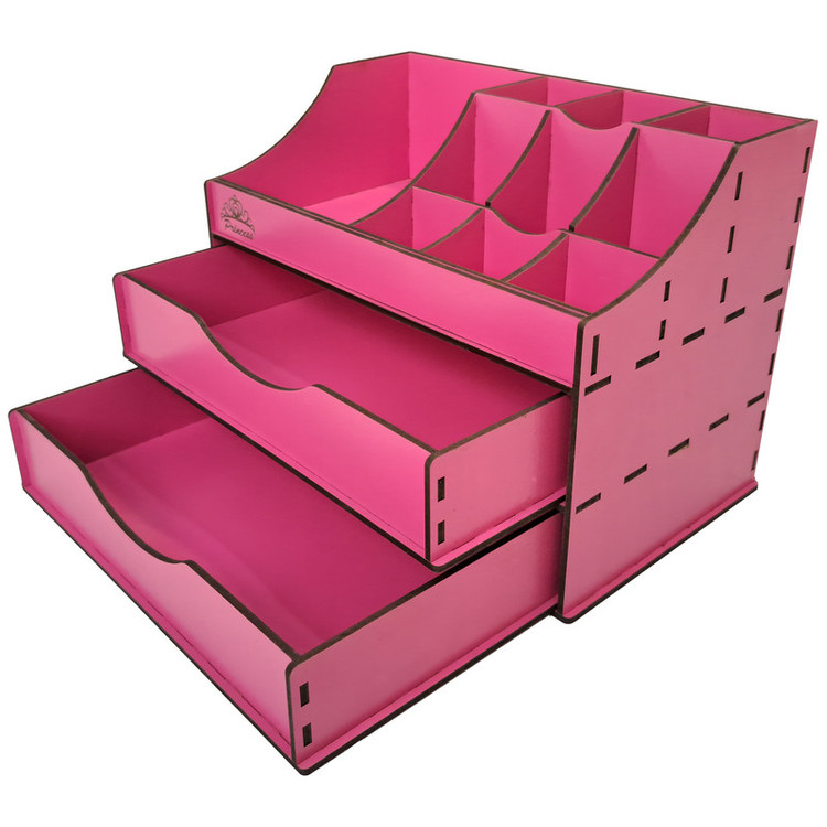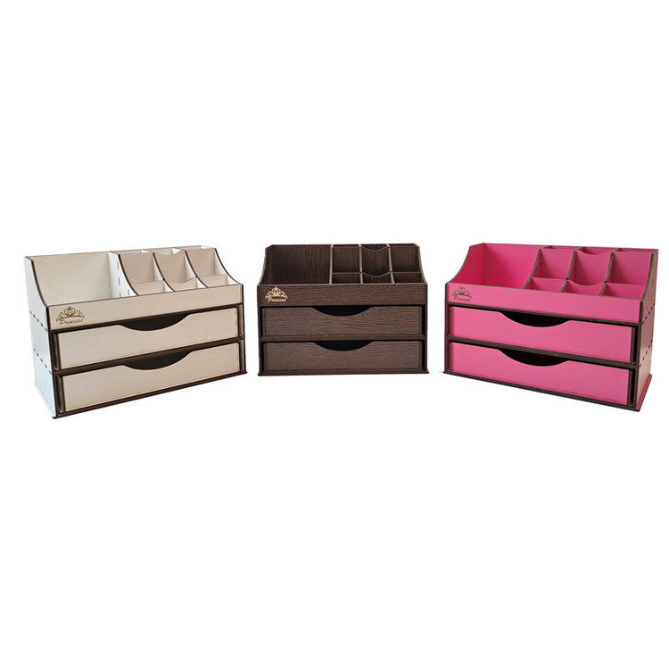 اغلب بانوان هنگام آرایش کردن با مشکل نامرتب بودن لوازم آرایشی و عدم دسترسی سریع به وسایل خود مواجهند که باعث اتلاف وقت و صلب آرامش آنها می شود. استفاده از نظم دهنده های رومیزی نقش بسزایی در مرتب بودن محیط ایفا کرده و زمان پیدا کردن وسایل و استفاده از آنها را به طرز چشم گیری کاهش میدهد. استند لوازم آرایشی مدل S-101 از سری نظم دهنده های رومیزی در سایز کوچک است که با انواع رنگ بندی برای همه سلیقه ها ارائه میگردد. جنس محصول از چوب MDF بوده و دارای دو کشو بزرگ جهت قرارگیری وسایل در قسمت پایینی و 12 محفظه جهت قرارگیری وسایل کوچک تر تعبیه شده است. این محصول برای قرارگیری انواع رژ لب، پنکیک، پاک کننده های آرایشی، انواع سایه های چشم، کرم، لوازم نگهداری از پوست و مو، مداد، عطر و ادوکلن، زیورآلات، بدلیجات و لوازم التحریر طراحی شده و قابل استفاده میباشد. شما میتوانید از این استند رومیزی در منزل، سالن های زیبایی، فروشگاه های لوازم آرایشی، داروخانه ها و تمام مکان هایی که نیازمند یک نظم دهنده لوازم آرایشی هستند استفاده کنید.
