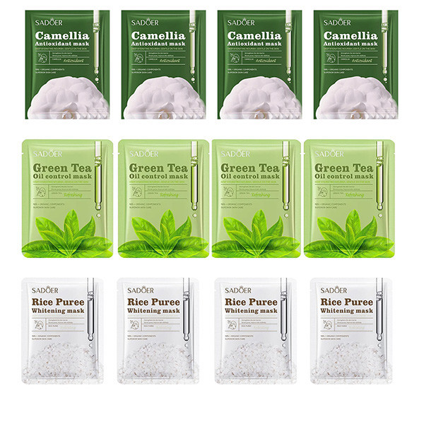 ماسک صورت سادور مدل چای سبز ، کاملیا و برنج وزن 25 گرم بسته 12 عددی