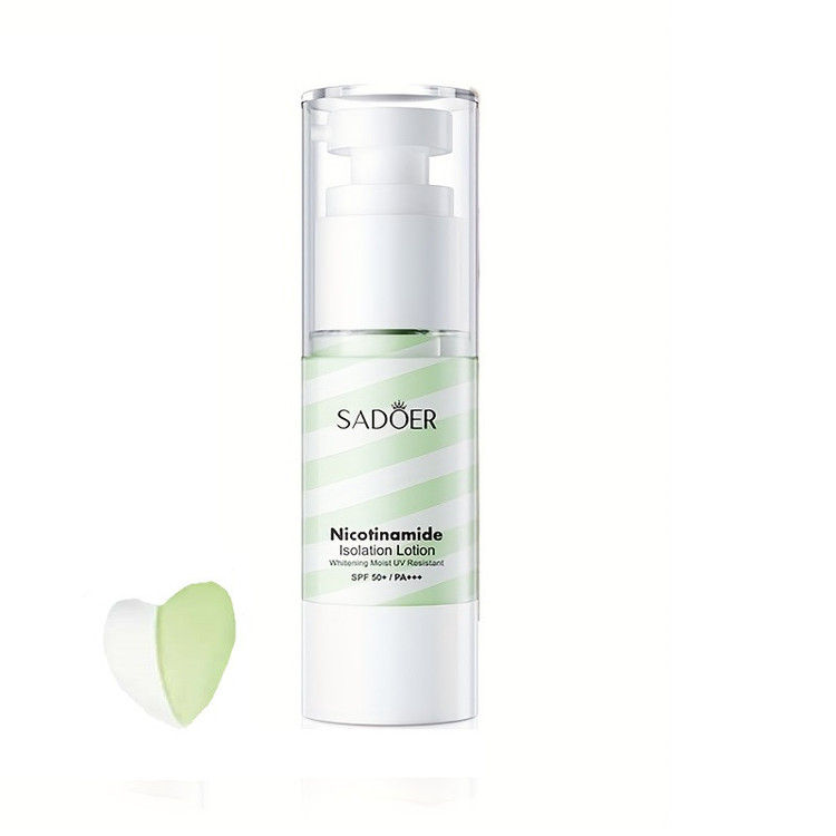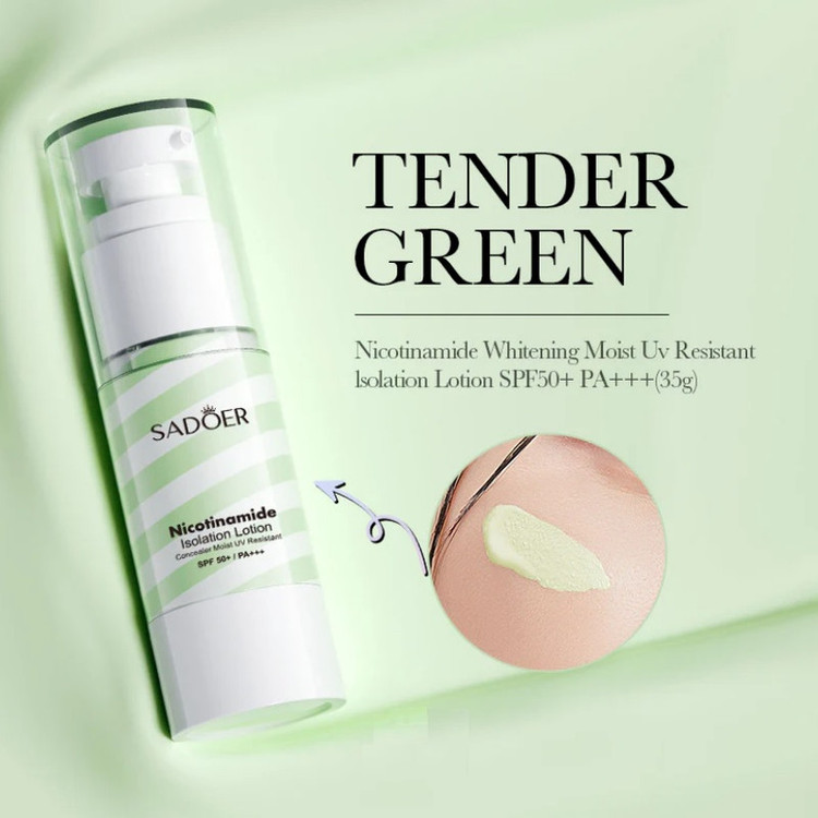 پرایمر و ضد آفتاب دو رنگ نیکوتینامید سادور حاوی ضد افتاب با اس پی اف 50 می باشد این محصول دارای پیگمنت رنگ اصلاح رنگ پوست است. این پرایمر حاوی عصاره گندم یوده و مرطوبکننده و نرم کننده و تغذیه کننده قوی پوست است.به دلیل رنگ سبز اصلاح رنگ پوست موجود در این پرایمر، کدری پوست کاهش یافته و موجب روشنی و شفافی پوست می شود. علاوه بر این پیشگیری کننده از چین وچروک و جوان کننده و مغذی پوست نیز هست.