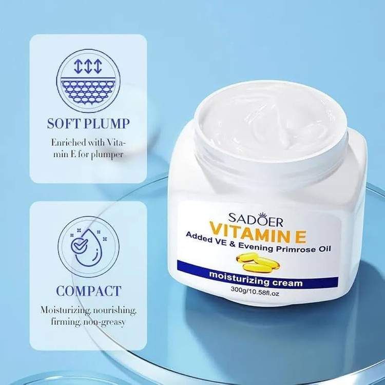 کرم آبرسان قوی ویتامین E سادور راه حلی قطعی برای رفع قفل خشکی و آبرسانی زیر پوست هست.این کرم حاوی مقادیر زیادی ویتامین E برای ترمیم و بازسازی پوست و نیز حاوی روغن گل مغربی است که دارای ماده موثر برای افزایش خاصیت ارتجاعی پوست یا همان لیفتینگ و در نتیجه سفت کننده پوست صورت و گردن میباشد.