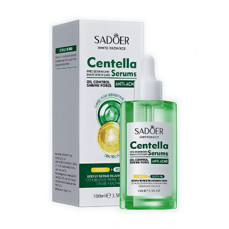 سرم ضدجوش سنتلا Sadoer یک محصول شگفت انگیز در کنترل چربی پوست صورت بوده و در سریعترین زمان هرنوع جوش و آکنه و قرمزی ناشی از آکنه را درمان کرده و پوست را پاکسازی می کند. این سرم با کارایی سریع خود جای جوش را برطرف کرده و پوست را احیا و تقویت میکند و پوست آسیب دیده را به پوستی نرم ، تازه و زیبا تبدیل میکند، همچنین چربی پوست را متعادل می کند و آنتی باکتریال است که از ایجاد دوباره جوش و آکنه پیشگیری می کند.این سرم با عصاره های گیاهی و مواد مغذی به طور معجزه آسایی تمام آسیب های پوستی را محو میکند و با روشن کردن رنگ پوست و بستن منافذ موجب پوستی صاف و درخشان می شود.سرم ضدجوش سنتلا Sadoer با ملایمت چربی اضافی موجود در دیواره منافذ پوست را پاکسازی کرده و سلولهای مرده پوست و آلودگی هایی که در منافذ محبوس شده را محو میکند که در نتیجه باعث درمان و جلوگیری از ایجاد دوباره جوش می شود و با افزایش گردش سلولی پوست و اثر لایه برداری پوست را از نو بازسازی و شاداب می کند.همچنین باکتری های ایجاد کننده آکنه را از بین میبرد و پوستی شاداب،بدون جوش خواهید داشت.بافت این سرم بسیار سبک و زودجذب است و بدون احساس سنگینی با اولین تماس پوست جذب می شود.