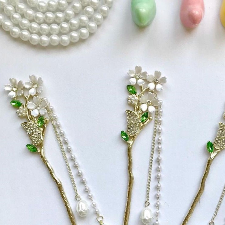 کانزاشی طرح زمرد یکی از بلندترین گیره های کانزاشی ست به همین علت برای بستن موهای بلند و پرحجم مناسب است.طراحی این کانزاشی شامل دانه های سبز رنگ زمردی و چند گل ظریف و زیبا از جنس مروارید و کریستال است و یک پروانه کوچک نگینی نیز در مجموعه اجزای این کانزاشی می باشد.در انتهای کانزاشی طرح زمرد نیز یک آویز بلند فلزی ست که زیبایی آن را تکمیل می نماید. کیفیت آبکاری و وزن مناسب از مهمترین مزیت های کانزاشی طرح زمرد است.برای استفاده از این اکسسوری سنتی و شرقی تنها کافی ست موهایتان را جمع نمایید و یا به صورت گوجه ای از پشت ببندید و سپس کانزاشی را در موهایتان محکم کنید.سپس جهت آن را طوری تنظیم کنید تا گلها و آویز به سمت بیرون نمایان باشد.