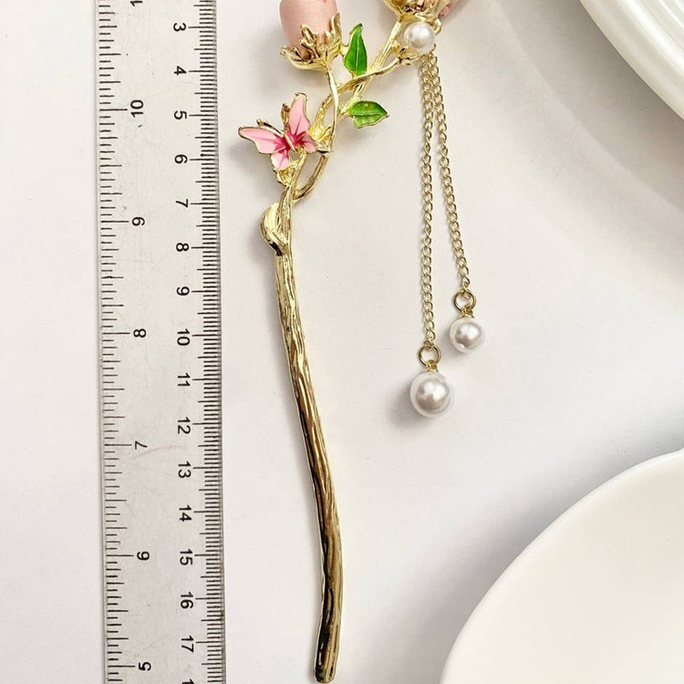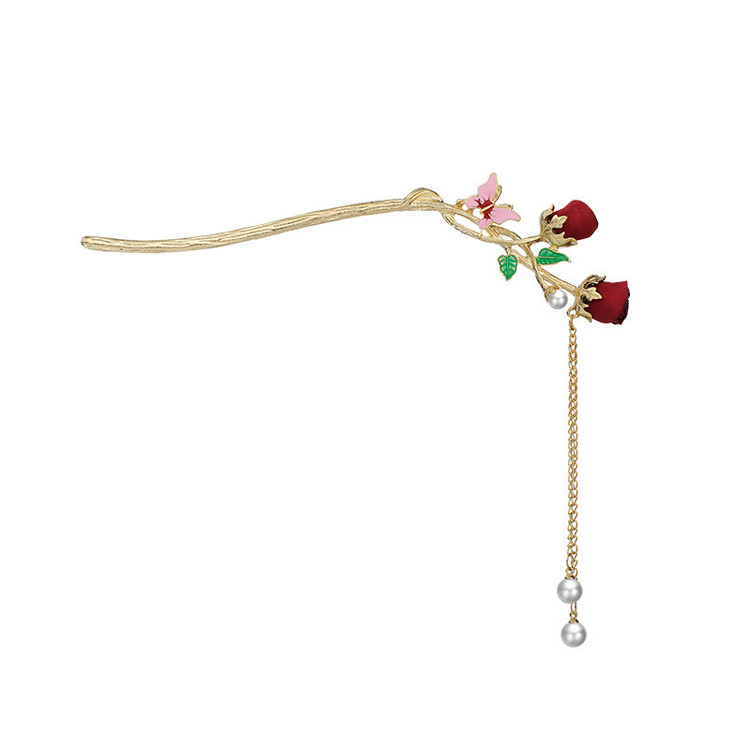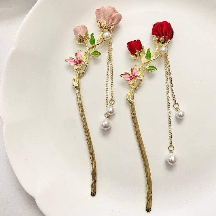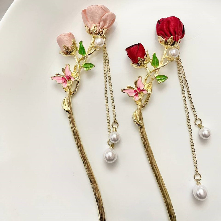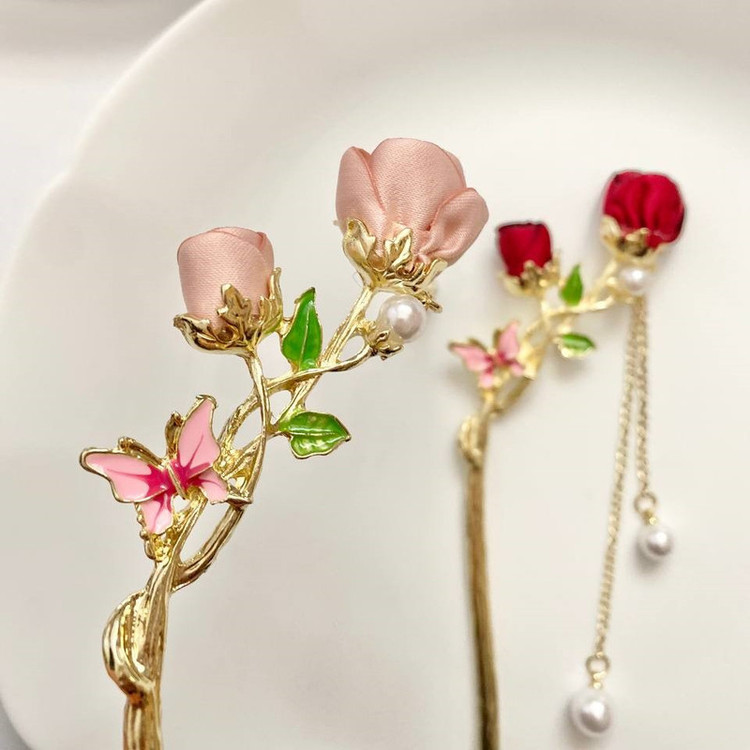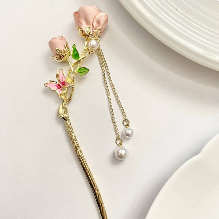گیره مو زنانه مدل کانزاشی طرح گل رز