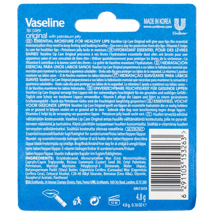 بالم لب وازلین مدل Original Lip Care با ویتامین E – مرطوبکننده و نرمکننده لبها