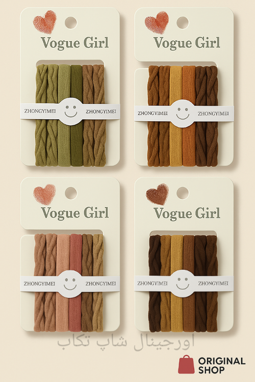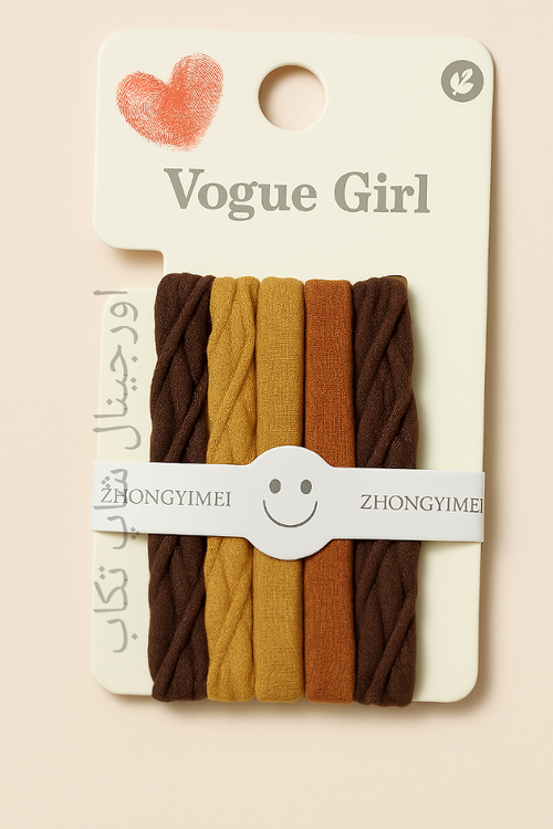 ست ۵ عددی کش مو بافتی در رنگهای گرم و طبیعی طراحی فانتزی و جذاب، مناسب برای دختران نوجوان و خانمهای شیکپوش کشهایی با بافت نرم و لطیف، بدون آسیب به مو کشسانی بالا و کیفیت عالی برای استفاده روزمره یا استایلهای خاص در چهار ترکیب رنگ متنوع