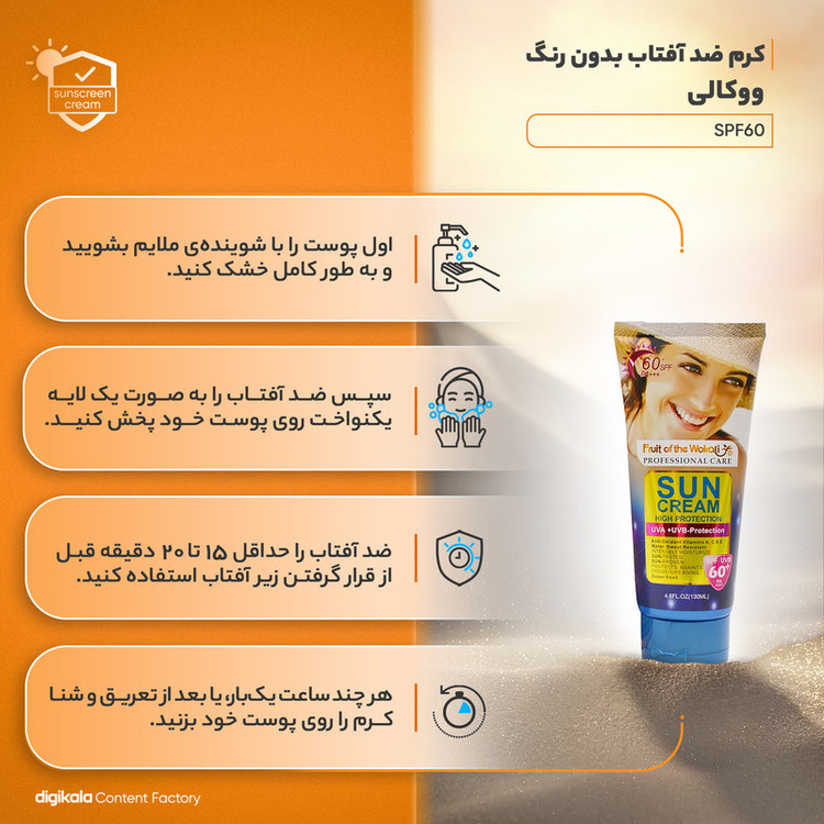 لوسیون ضدآفتاب بیرنگ ووکالی مدل SPF60 مناسب انواع پوست، حجم 130 میلیلیتر