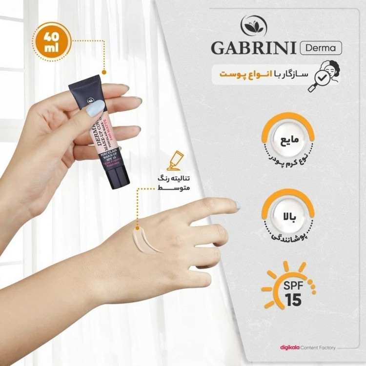 کرم پودر موجود در تصویر، Gabrini Derma Make-Up Cover با مشخصات زیر است: