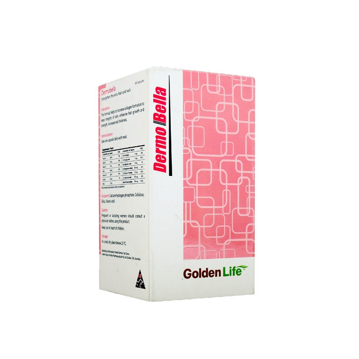 کپسول درموبلا گلدن لایف برای حفظ سلامت پوست، مو و ناخن فرموله شده است. این مکمل به افزایش تولید کلاژن برای حفظ سلامت پوست، افزایش رشد و تقویت مو و افزایش ضخامت ناخن ها، کمک می کند.