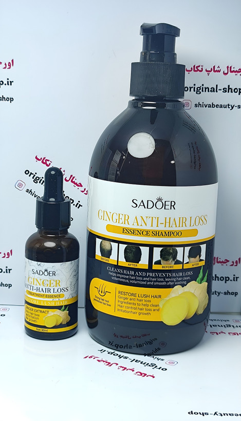 ست دوتایی شامپو و سرم ضد ریزش مو زنجبیل SADOER تقویت رشد مو و جلوگیری از ریزش