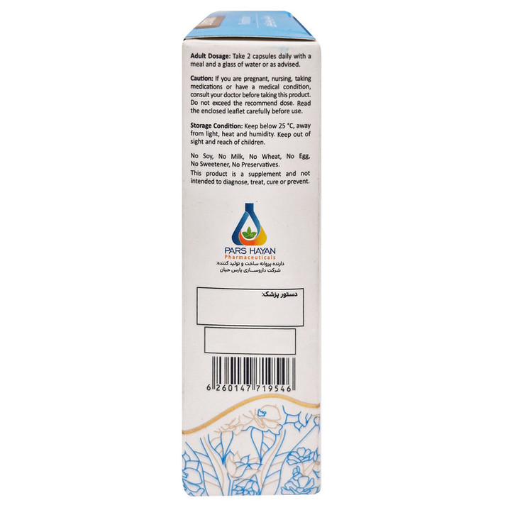 روش مصرف: روزانه دو عدد کپسول همراه با غذا و یک لیوان آب و یا طبق دستور پزشک یا داروساز مصرف گردد.