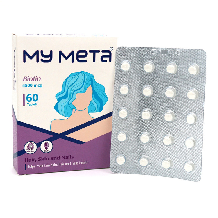 بیوتین مای متا در دوز بالا و کارآمد با ابعاد بسیار کوچک برای بلع آسان، فراهم شده است.