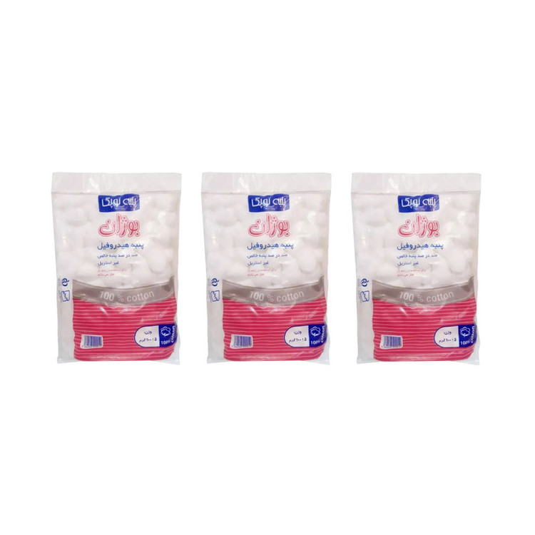 پنبه آرایشی پنبه هیدروفیل بوژان مدل توپی وزن 100 گرم مجموعه 3 عددی