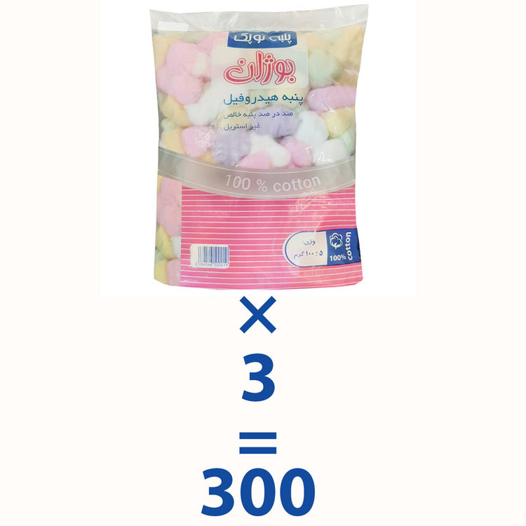پنبه آرایشی پنبه هیدروفیل بوژان مدل 27004 وزن 100 گرم مجموعه 3 عددی