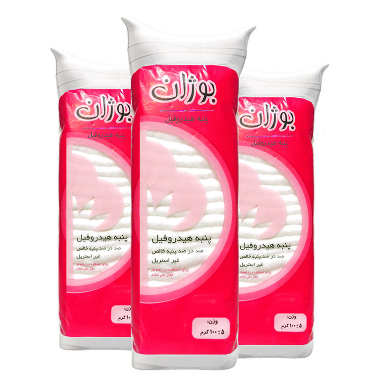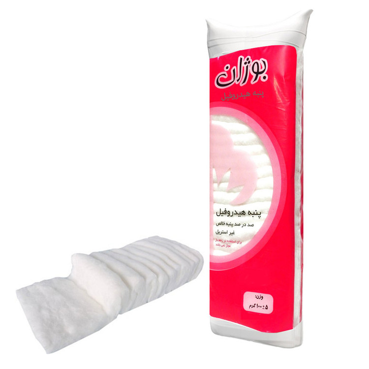 پنبه هیدروفیل 100 گرمی بوژان بسیار نرم و لطیف بوده و فاقد هرگونه آلایندگی خارجی می باشد. دارای کیفیت بالا و دارای مهر استاندارد بشماره 8930761912 و همچنین مجوز بهداشت و سیب سلامت بشماره 35/11075 می باشد. پنبههای هیدروفیل بوژان جهت پاک کردن مواد آرایشی و ضد عفونی کردن استفاده می شود و شما قادر خواهید بود با استفاده از پاککنندههای آرایشی یا محلول های ضد عفونی کننده این مهم را انجام دهید. البته این نکته را فراموش نکنید که از این پنبه به صورت مستقیم روی زخم باز استفاده نکنید و حتما از محلول های ضد عفونی کننده قبل از تماس با زخم استفاده شود. پنبه جزو لوازمی محسوب میشود که عموما برای مصارف مختلفی در مکانهای متفاوت مورد استفاده قرار میگیرد و به نوعی میتوان گفت پنبه از ملزوماتی است که در هر محیطی اعم از محیط کار، منزل و… وجود آن ضروری و مورد نیاز است.