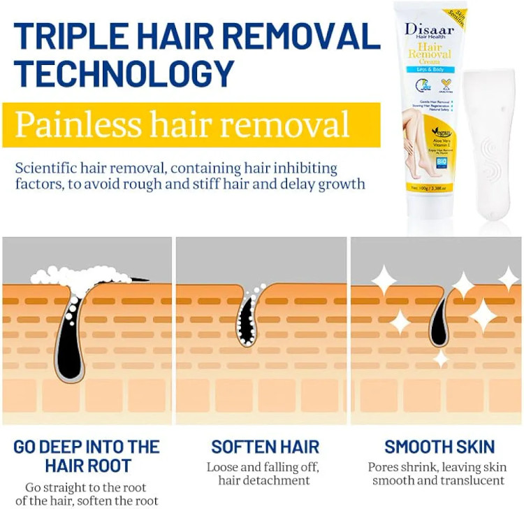 حذف مؤثر موها: عملکرد قوی در حل کردن کراتین مو، بدون نیاز به تیغ یا اپیلاسیون.