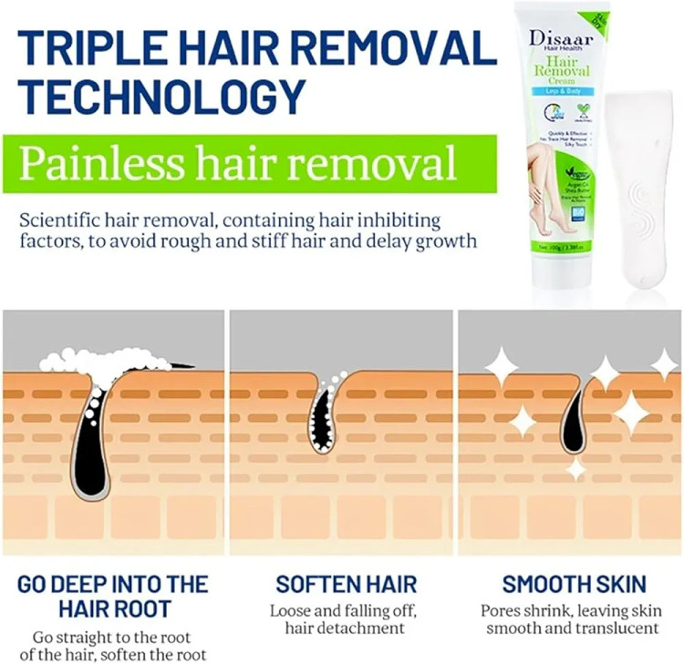 کرم موبر Disaar مخصوص پوستهای خشک، راهحلی سریع، مؤثر و بدون درد برای حذف موهای زائد از پاها و بدن است. با فرمولاسیون غنیشده با روغن آرگان و کره شی (Shea Butter)، این کرم نه تنها موها را به سرعت از بین میبرد، بلکه پوست را نرم، مرطوب و لطیف نگه میدارد.