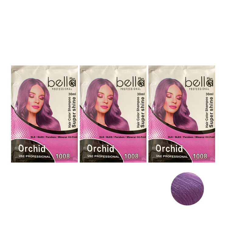 شامپو رنگ مو بلا پلاس مدل SUPERSHIN شماره 1008 حجم 30 میلی لیتر رنگ بنفش ارکیده بسته 3 عددی