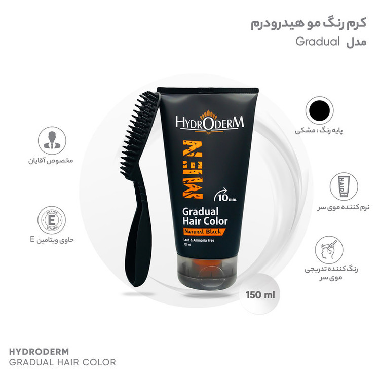 کرم رنگ مو تدریجی هیدرودرم مدل Gradual حجم 150 میلی لیتر رنگ مشکی