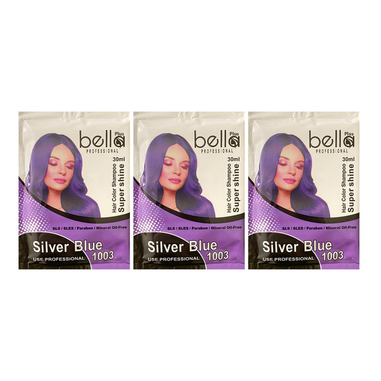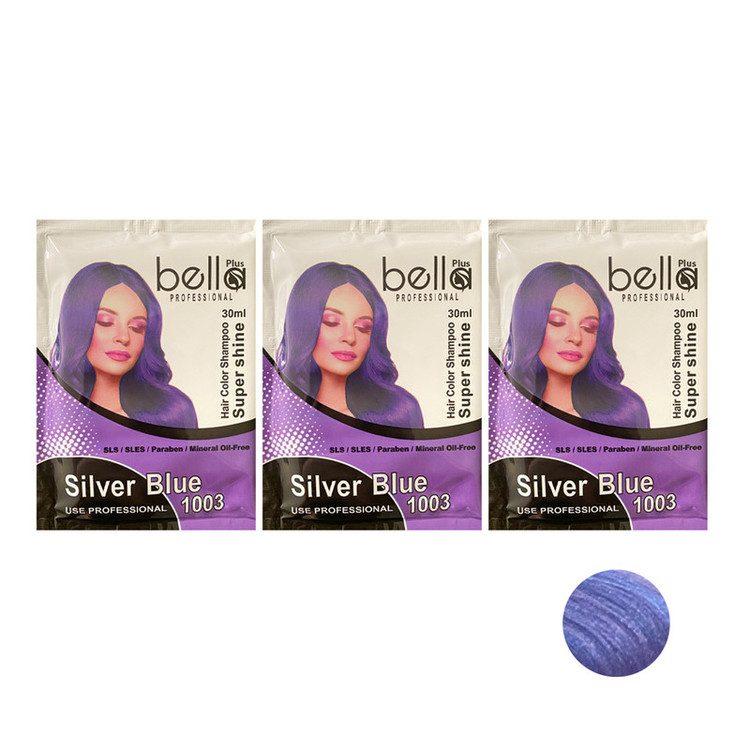 شامپو رنگ مو بلا پلاس مدل SUPERSHIN شماره 1003 حجم 30 میلی لیتر رنگ نقره آبی بسته 3 عددی