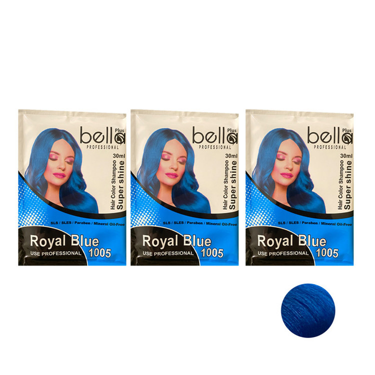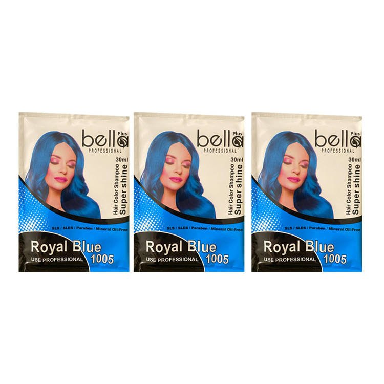 شامپو رنگ مو بلا پلاس مدل SUPERSHIN شماره 1005 حجم 30 میلی لیتر رنگ آبی درباری بسته 3 عددی