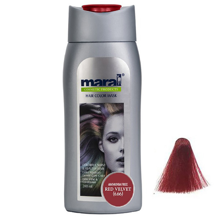 شامپو رنگساژ مارال (ماسک رنگ مو) فرمولاسیون منحصر به فرد و فاقد آمونیاک این محصول حاوی نرم کننده و مرطوب کننده نیز می باشد و اثرات جانبی رنگ موهای دائمی همانند خشکی و آسیب مو، سوزش چشم و مشکلات تنفسی را نیز به همراه ندارد. ماندگاری رنگ و حفظ لطافت و نرمی مو از ویژگی های دیگر این محصول می باشد. مقدار مناسبی از شامپو را بر روی موی دکلره شده استفاده نموده و موها را کاملا آغشته نمایید و پس از 10 دقیقه بطور کامل آبکشی نمایید.