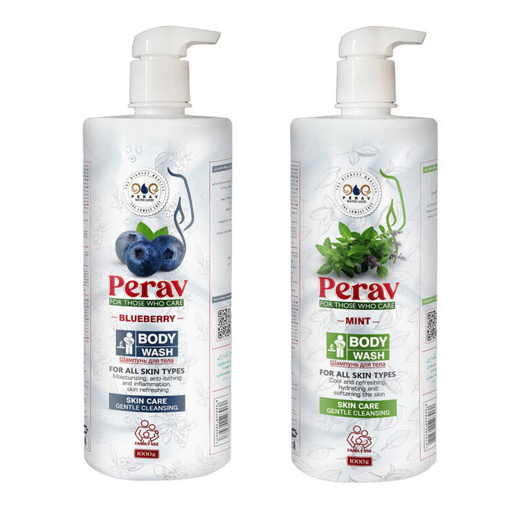 شامپو بدن پراو مدل بلوبری و نعناع حجم 1000 میلی لیتر بسته دو عددی