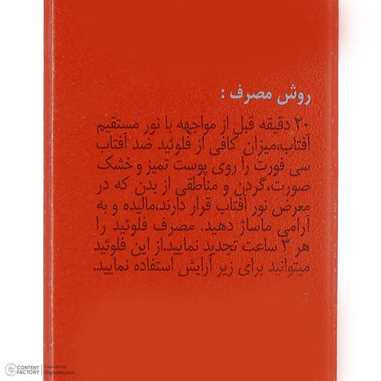 راهنمای استفاده : 20 دقیقه قبل از مواجهه با نور مستقیم آفتاب، میزان کافی از فلوئید ضد آفتاب سی فورت را روی پوست تمیز و خشک صورت، گردن و مناطقی از بدن که در معرض نور آفتاب قرار دارند، مالیده و به آرامی ماساژ دهید. مصرف فلوئید را هر 3 ساعت تجدید کنید.