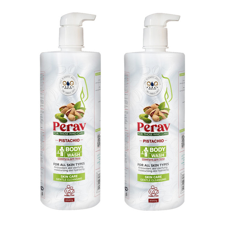 شامپو بدن پراو مدل پسته مناسب برای انواع پوست وزن 1000 گرم مجموعه دو عددی