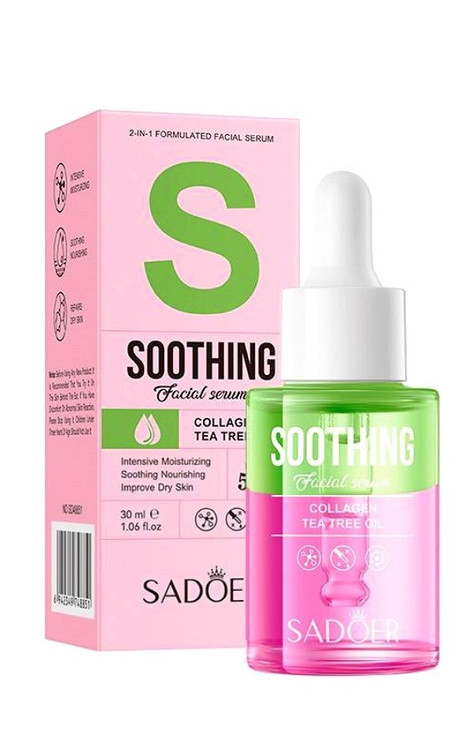 سرم صورت Soothing سادور یک سرم دوکاره (2in1) با خاصیت آرامبخشی و آبرسانی عمیق است که با ترکیبات مؤثری مثل کلاژن و روغن درخت چای (Tea Tree Oil) به بهبود سلامت و شادابی پوست کمک میکند. این سرم انتخابی عالی برای پوستهای خشک، حساس و مستعد التهاب محسوب میشود.
