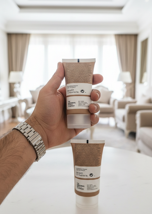 حجم و بستهبندی: ۵۰ میلیلیتر در تیوپ با درپوش شفاف، طراحی شیک و مینیمال (قهوهای-کرم رنگ تیوب).