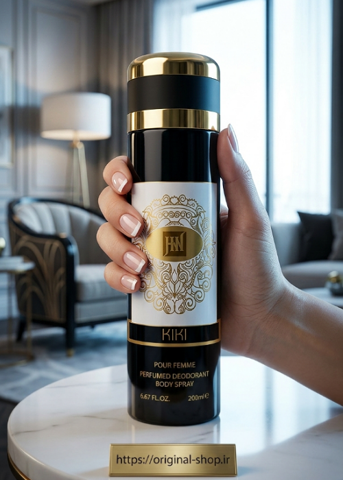 نام KIKI از برند HM (یا HM-inspired / مشابه HM) برای خانمها (Pour Femme) هست. حجمش ۲۰۰ میلیلیتر (۶.۶۷ FL.OZ) نوشته شده و به عنوان Perfumed Deodorant Body Spray معرفی شده.