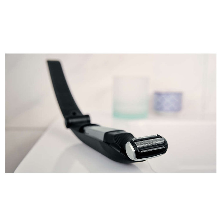 دارای تیغههای فویلیدارای شانه های 3 و 5 و 7 میلیمترباتری لیتیوم یونیطراحی دسته ارگونومیک بلند برای اصلاح محلهای دور از دسترسزمان استفاده: 60 دقیقهمدت زمان نیاز برای شارژ: 1 ساعت