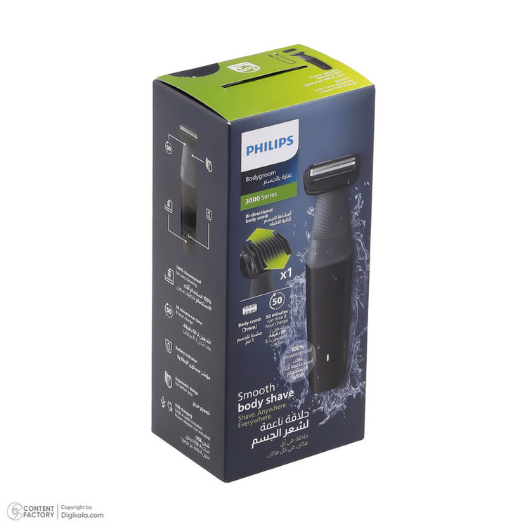 شارژر USB - قابل استفاده زیر دوش حمام - 100٪ ضد اب - تیغه های نرم ضد حساسیت - دارای یک عدد شانه - ارگونومی - 50 دقیقه استفاده بعد از شارژ کامل - نمایشگر باطری برای 5 دقیقه اخر شارژ -
