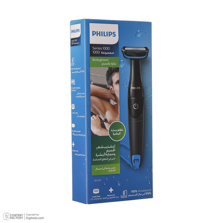 هر چند که موی سر یکی از عوامل موثر در زیبایی افراد است، ولی رویش مو در نقاط دیگر همچون بدن نه تنها به زیبایی کمک نمیکند بلکه در برخی موارد آزاردهنده نیز هست. از بین بردن موها در این نواحی کمک فراوانی به زیبایی افراد میکند زیرا در این شرایط رنگ واقعی پوست دیده شده و لطیفتر بهنظر میرسد. برای کمک به حل این مشکل از ابزارهای مختلفی استفاده میشود که یکی از آنها ماشین اصلاح بدن است. BG1024 یک ماشین اصلاح بدن، ساخت شرکت «فیلیپس» (Philips) است. این محصول سریهای برش مستقیم دارد که موهای بدن را از 0.5 تا 3 میلیمتر کوتاه میکنند. این مدل دارای سریهای قابل شستشو است. با وجود قابلیت استفاده زیر دوش، موهای بدن را راحتتر میتوان کوتاه کرد. همچنین برای این دستگاه باتری غیرقابل شارژ به عنوان منبع تغذیه در نظر گرفته شده است. در نهایت میتوان گفت اگر به یک ماشین اصلاح با امکانات مناسب نیاز دارید، میتوانید BG1024 را انتخاب کنید.